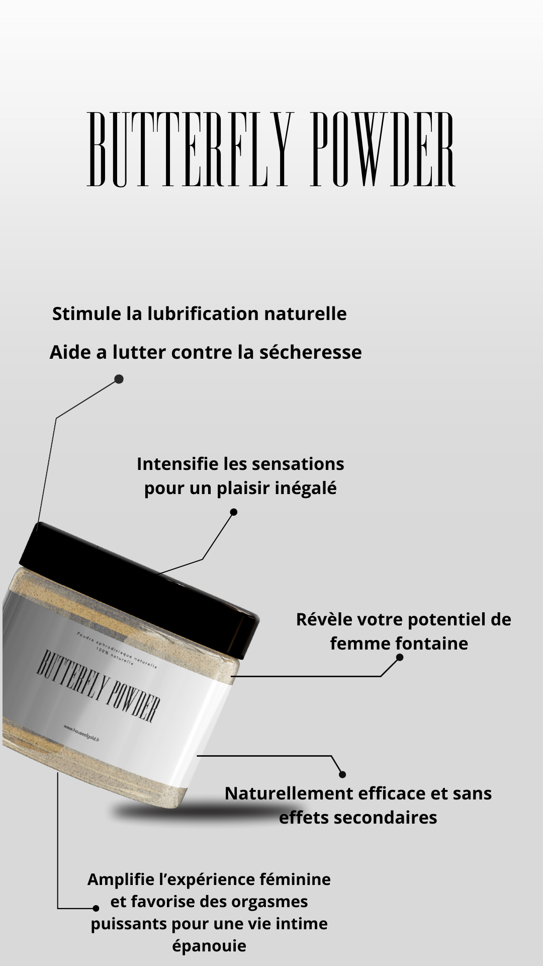 Poudre naturelle féminine conçue pour éveiller les sens et révéler tout le potentiel du plaisir.